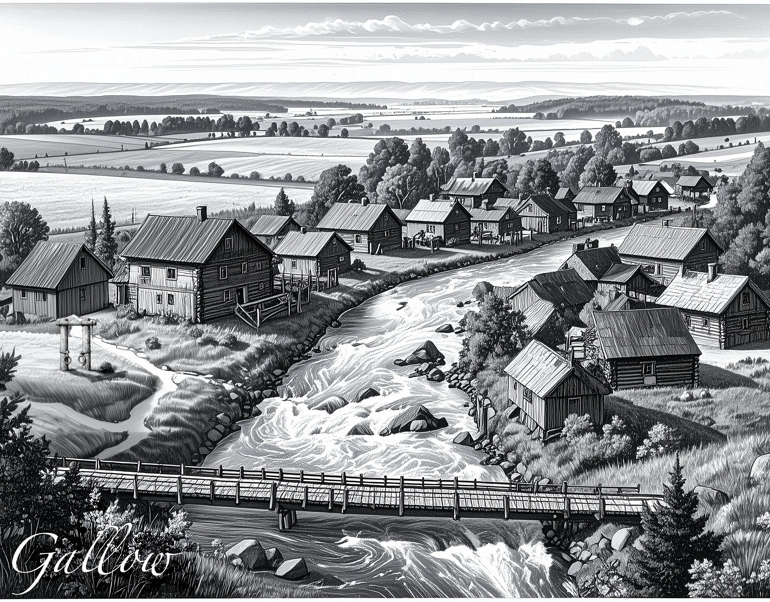 Located in the Southwest corner of the Island of Ra, Gallow is a simple village with a population of a little over a hundred Ones. Known for its quiet scenery, the Raymonde River rushes through the center all day. It contains several farms, a tavern, a bakery, a carpenter, a blacksmith, and several other trades. Very little excitement happens here; the residents like it just the way it is.